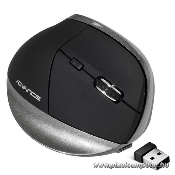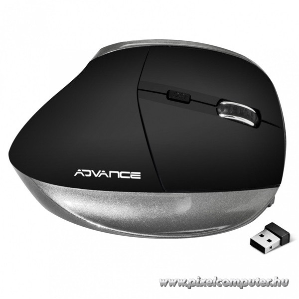Az Advance VERTICAL PLUS MOUSE fekete vezeték nélküli egeret irodai dolgozóknak, diákoknak, tanároknak, programozóknak, grafikusoknak és mindenkinek ajánljuk, aki napi több órát dolgozik számítógépen, és fontos számára a kéz, a csukló és az alkar egészséges tartása.