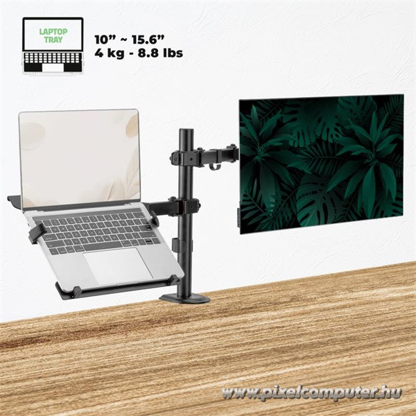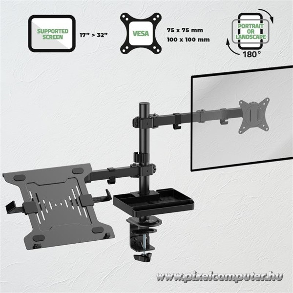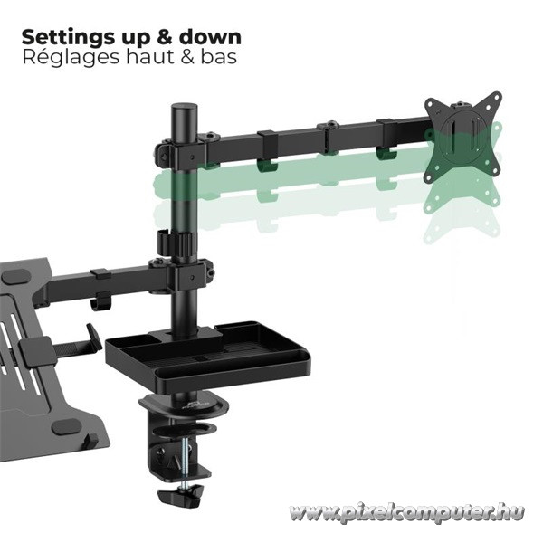 Ez a konzol tökéletes választás azoknak, akik egyszerre használnak monitort és laptopot – például kreatív szakemberek, otthoni irodában dolgozók, fejlesztők és hybrid munkarendet követők. A multifunkciós kialakítás lehetővé teszi, hogy minden eszközöd a tökéletes pozícióban legyen, miközben az asztalod mindig rendezett és átlátható marad.