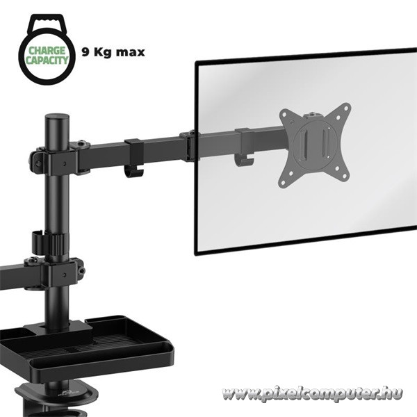 A 9 kg-os teherbírás karonként masszív tartást biztosít, ami különösen fontos, ha nagyobb méretű monitorokat használsz. A 17”-32” közötti kijelzőméret támogatás lefedi a legtöbb elterjedt monitor típust, így nem kell kompromisszumot kötnöd sem a méret, sem a funkcionalitás terén. A stabil alapszerkezet és a gondosan megtervezett mozgástartomány hosszú távú, megbízható használatot garantál.