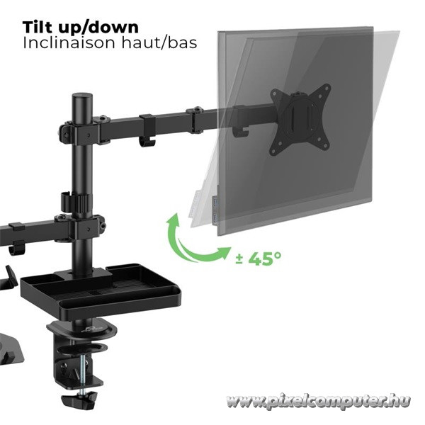 Az Advance XTENDMOUNTS FLEX konzol azoknak készült, akik a hatékonyságot és a kényelmet egyszerre szeretnék maximalizálni. A kétkaros kialakítás révén lehetőséged nyílik külön monitor és laptop egyidejű használatára, méghozzá teljes mozgásszabadság mellett. A dönthető és forgatható karoknak köszönhetően úgy állíthatod be a képernyőket, ahogy neked a legkényelmesebb – mindezt anélkül, hogy újra el kellene rendezni az asztalod.