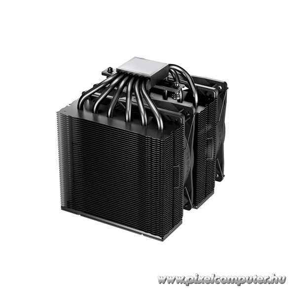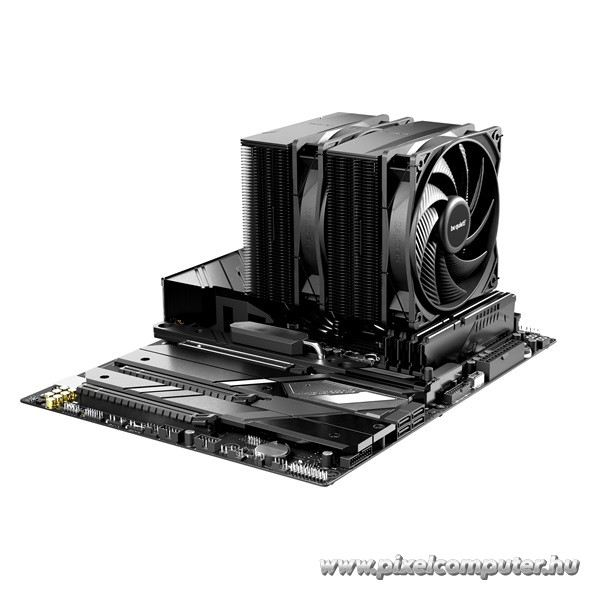 A fekete dizájn nem csupán esztétikai élmény: vizuálisan is illeszkedik bármilyen buildhez, legyen az RGB-s, letisztult vagy ipari stílusú. A hat darab 6 mm-es hővezető cső és a nikkelezett hűtőtalp nemcsak hatékonyak, de megbízhatóak is – az anyaghasználat garantálja a hosszan tartó teljesítményt. A hűtő eltolható kialakítása lehetővé teszi a magasabb RAM modulok és VRM hűtők melletti beépítést, így kompatibilitási problémáktól sem kell tartani. Ez a típus azoknak való, akik a maximumra hajtanak – zaj nélkül.