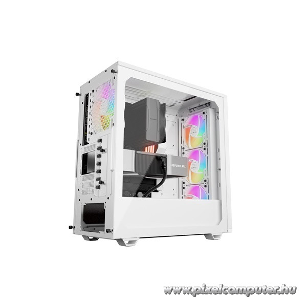 A Be Quiet! Pure Base 501 LX White azoknak szól, akik nem elégednek meg az átlagossal. Ideális választás hardcore gamereknek, tartalomkészítőknek és professzionális felhasználóknak, akik prémium minőségű, jól szellőző és vizuálisan is lenyűgöző számítógépházat keresnek. A négy beépített ventilátor, a tágas belső tér, valamint a kiváló kábelmenedzsment mind hozzájárul ahhoz, hogy az építés öröm, a használat pedig élmény legyen.