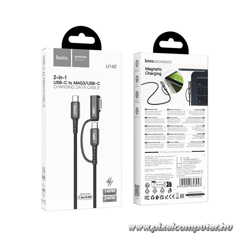 Nem véletlen, hogy a nagy teljesítményű univerzális kábelek iránt folyamatosan nő az igény. A Pixelcomputer vásárlói különösen értékelik a 240 W-os USB-C teljesítményt és a MagSafe 3 kompatibilitást egyetlen kábelben. A visszajelzések szerint a kábel stabilan működik nagy terhelés mellett is. A mágneses csatlakozás praktikus megoldást kínál. A fonott borítás ellenáll a rendszeres használatnak. A rendszer nem igényel bonyolult beállítást. A teljesítmény következetes marad. A kompatibilitás széles körű. A konstrukció masszív és időtálló. A töltési folyamat egyenletes. A kábel több eszközt is képes kiszolgálni. A minőség minden részletben érzékelhető. A hordozhatóság kényelmes. A működés kiszámítható. A választás tudatos döntés a nagy teljesítményű és sokoldalú megoldás érdekében. Válaszd a Hoco U142 2 az 1-ben kábelt, és biztosíts maximális teljesítményt egyetlen univerzális csatlakozással.