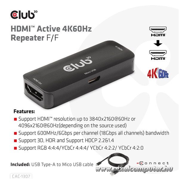 A CAC-1307 nem csak egy „jelismétlő”. Ez a Te digitális jelbiztosítékod. Egy kis méretű, de rendkívül nagy teljesítményű HDMI kiegészítő, amely garantálja a stabil, villódzásmentes kapcsolatot még a legigényesebb felhasználási környezetben is. A megbízható működéshez elég egy egyszerű USB tápellátás, és máris újjászületik a kép – akár 4K 60Hz HDR minőségben!