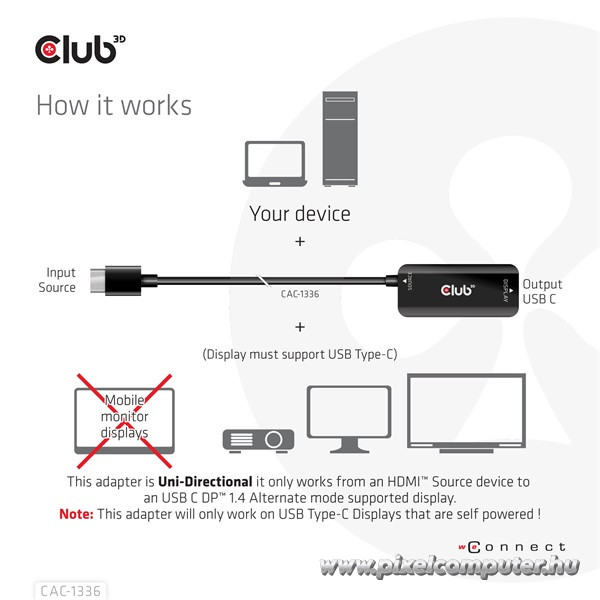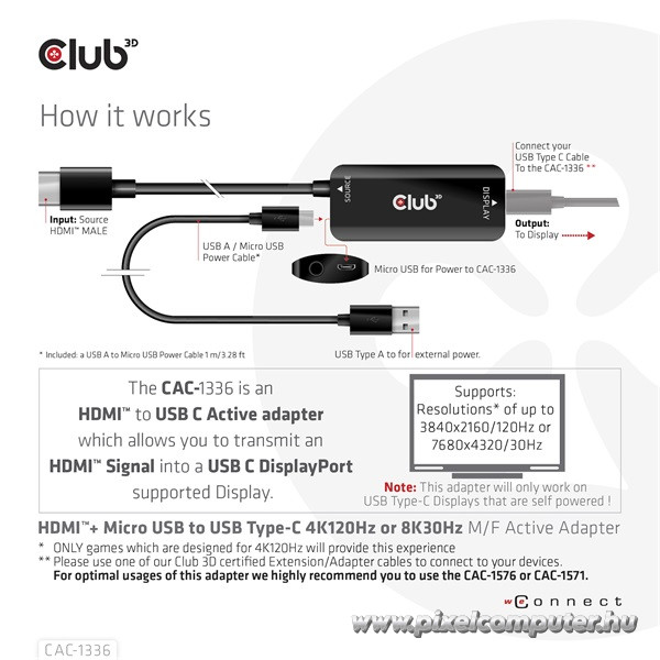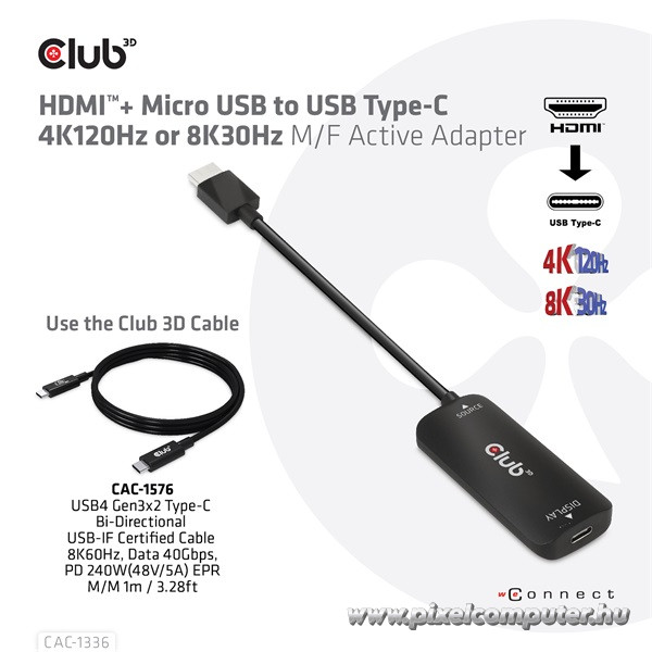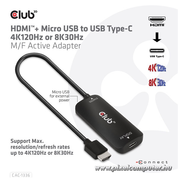 Club 3D Átalakító - CAC-1336 (HDMI+Micro USB to USB-C, 4K120Hz/8K30Hz)
