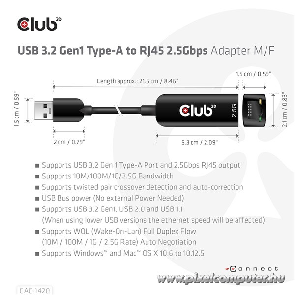 A Club 3D CAC-1420 nem csupán egy technikai eszköz – ez egy kényelmi szintlépés. Azonnal használatra kész, illesztőprogram-támogatással rendelkezik, és akár 2,5 Gbps sebességre képes. Ez a sebességkülönbség a való életben is érezhető: gyorsabban tölt be minden, kevesebb az akadozás, és jobb az élmény. Az USB tápellátásnak köszönhetően nincs szükség plusz kábelekre, sem adapterre – egyszerű, hatékony és hordozható. A modern élet pörgéséhez ez a praktikus eszköz tökéletes választás.