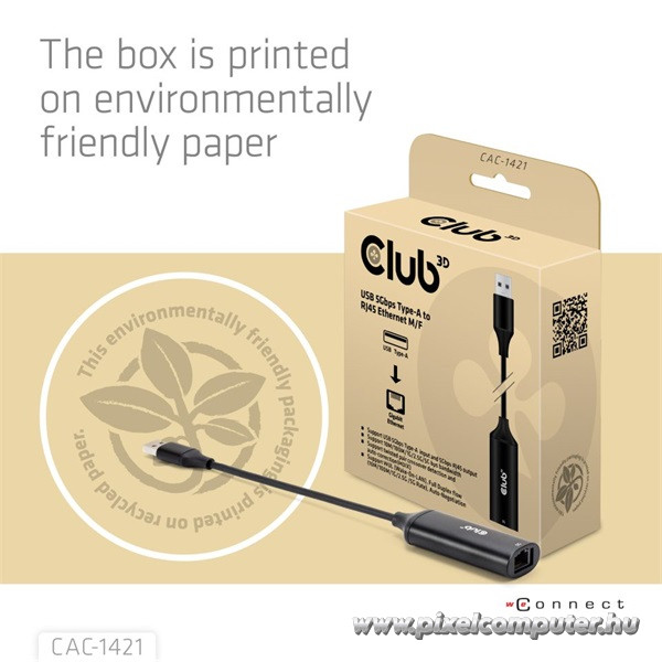 A prémium anyaghasználatnak és a kompakt méretnek köszönhetően a Club 3D CAC-1421 minden környezetben helytáll. Az eszköz 12 cm-es kábellel és strapabíró házzal rendelkezik, így ideális utazásokhoz is. A biológiailag lebomló csomagolás és az újrahasznosított anyagok használata a Club 3D környezetbarát szemléletét tükrözi – így nemcsak gyors, hanem tudatos választás is. A Pixelcomputer vásárlói szerint ez az adapter hosszú távon is megbízható, és tökéletesen helyettesíti a beépített hálózati portokat modern notebookokon.