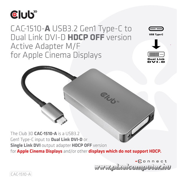 A Pixelcomputernél kapható Club 3D CAC-1510-A adapter kiváló választás, ha kompatibilitás, minőség és funkcionalitás a cél. Ügyfeleink rendszeresen kiemelik, hogy mennyire gördülékenyen működik még azokkal a régebbi kijelzőkkel is, amelyeket más adapterek nem támogatnak. A HDCP OFF funkció hiánya ebben az esetben előny – végre egy eszköz, ami pontosan azt nyújtja, amire szükséged van!