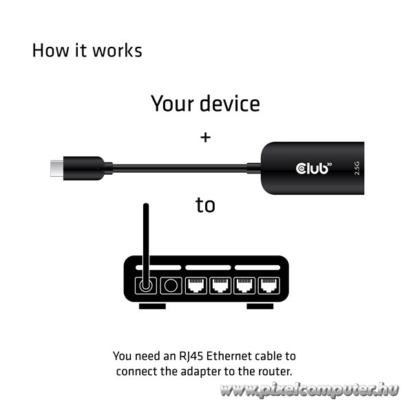 Válaszd a Club 3D CAC-1520 USB-C – RJ45 2.5Gbps adaptert a Pixelcomputer webáruházban, és tapasztald meg, milyen a valódi, nagysebességű hálózati kapcsolat – stabilan, biztonságosan, bárhol!