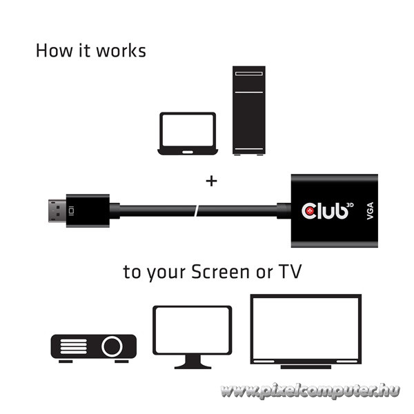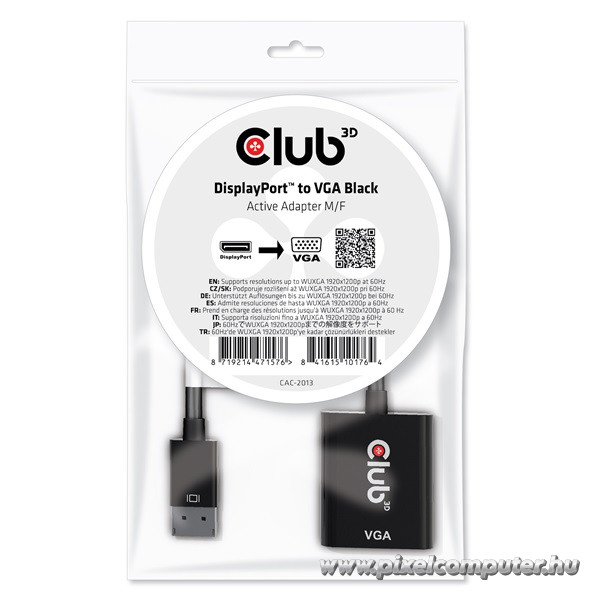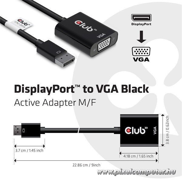 Club 3D Átalakító - CAC-2013 (DisplayPort 1.1a to VGA, fekete, aktív, WUXGA 1920x1200 @60Hz)