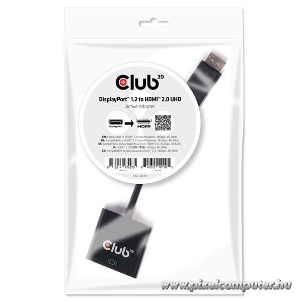 Csatlakoztasd a jövőt a Club 3D CAC-2070 DisplayPort 1.2 – HDMI 2.0 aktív átalakítóval, és élvezd a tökéletes 4K 60Hz képminőséget a Pixelcomputer webáruházból!