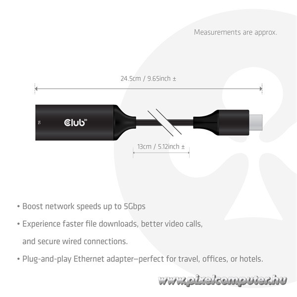 Rendeld meg most a Pixelcomputer webáruházban, és élvezd a gyors, biztonságos és stabil vezetékes kapcsolatot – a Club 3D CAC-2530 USB-C → RJ45 5Gbps Ethernet adapterrel, amely a teljesítmény és mobilitás tökéletes egyensúlyát kínálja!