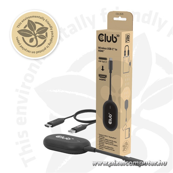 Rendeld meg most a Club 3D CSV-2570 vezeték nélküli USB-C® – HDMI™ adaptert a Pixelcomputertől, és élvezd a kábelmentes szabadságot minden helyzetben!