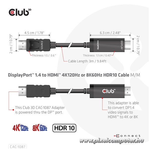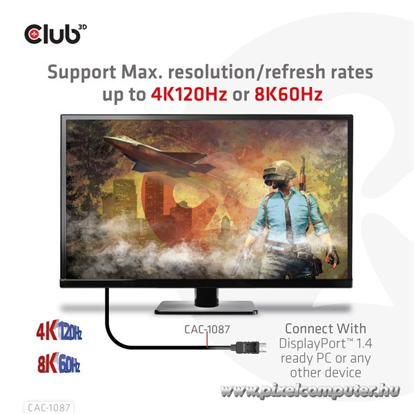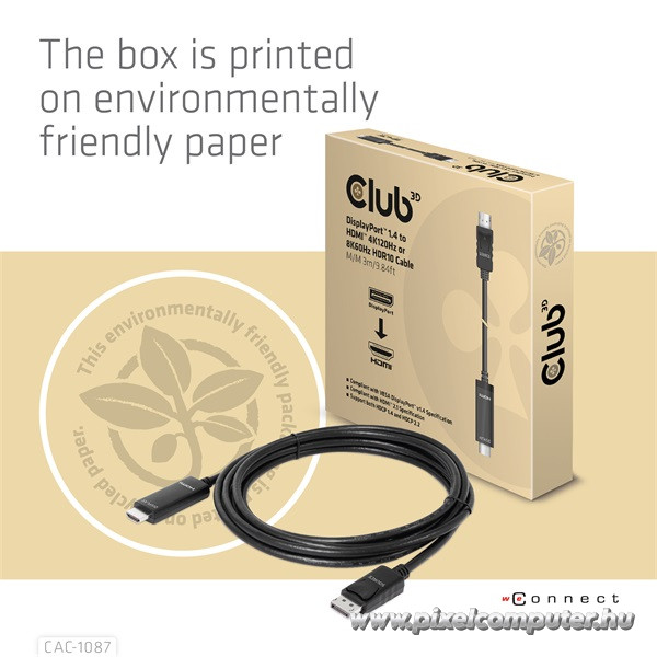 A Club 3D CAC-1087 DisplayPort™ 1.4 – HDMI™ 2.1 kábel a tökéletes választás azok számára, akik a jövő kijelzőtechnológiáját szeretnék már ma kihasználni.