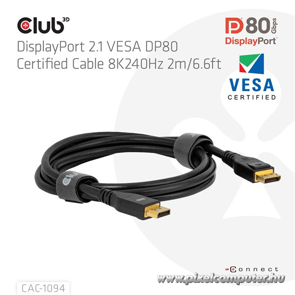 Válaszd a Club 3D CAC-1094 DisplayPort 2.1 kábelt a Pixelcomputernél, és élvezd a maximális felbontást, sebességet és megbízhatóságot minden csatlakoztatásnál!