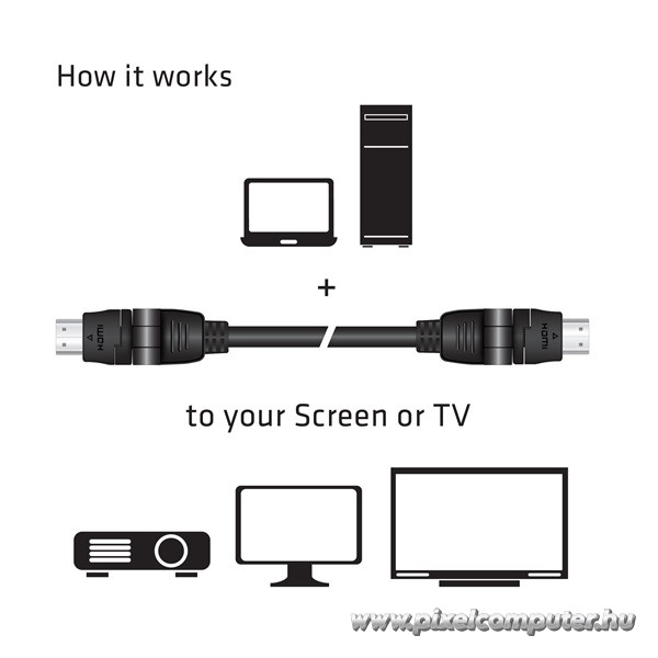 Szerezd be a Club 3D CAC-1360 forgatható HDMI™ kábelt a Pixelcomputer webáruházban, és tapasztald meg, milyen, amikor minden tökéletesen illeszkedik!
