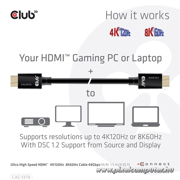 Ez a prémium minőségű kábel nemcsak egy eszköz, hanem egy megbízható befektetés a jövőbe. Kifejezetten ajánlott a legújabb konzolokhoz – Xbox Series X/S, PS5, illetve Nvidia RTX 3000 és AMD Radeon RX 6800 sorozat – de kompatibilis minden HDMI 2.1-et támogató eszközzel. Ha szeretnéd a maximumot kihozni a rendszeredből, nincs helye olcsó vagy megbízhatatlan kábeleknek. A CAC-1370 a minőség garanciája – és ha a Pixelcomputertől rendeled, biztos lehetsz benne, hogy a legjobb kezekben vagy.