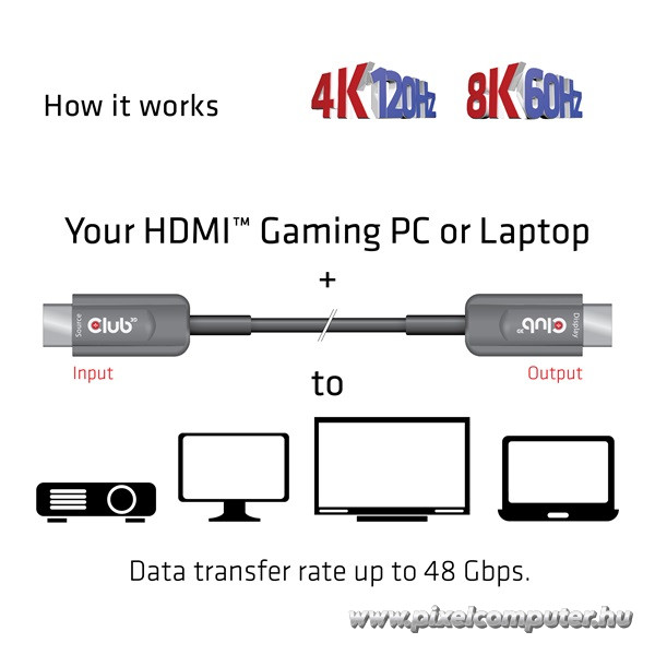 Válaszd a Club 3D CAC-1376 Ultra High Speed HDMI™ kábelt a Pixelcomputer webáruházban, és élvezd a 8K élményt kompromisszumok nélkül – minden képkocka, minden hang tökéletes lesz!