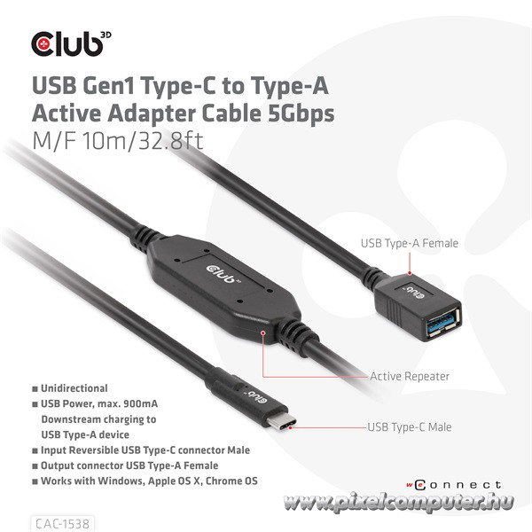 A 5 Gbps adatátviteli sebesség még ilyen hosszúság mellett is stabil kapcsolatot garantál, miközben az aktív adaptertechnológia gondoskodik arról, hogy a jel ne gyengüljön az út során. A 900 mA-es töltési képesség elegendő energiát biztosít kisebb eszközök, adapterek, vagy adatátviteli perifériák működtetéséhez.
