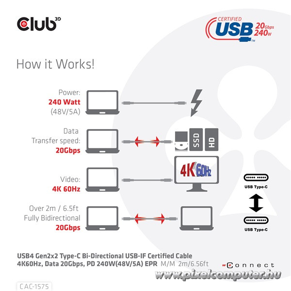 A CAC‑1575 olyan eszköz, amely egyszerre kezeli a nagy felbontású videojelet, a nagysebességű adatátvitelt és a villámgyors PD töltést. Ez különösen hasznos kreatív szakembereknek, VR felhasználóknak vagy olyan felhasználóknak, akiknek egyszerre van szükségük nagy sávszélességre és megbízható táplálásra – például egyetlen USB-C kábellel össze tudják kötni a laptopot egy VR headsettel vagy egy 4K képernyővel, miközben a laptopot is töltik. A kétirányú PD funkció különösen praktikus, ha például a laptop tölti a telefont vagy fordítva – intuitív, minden irányban egyszerű. A USB‑IF tanúsítvány garantálja a maximális kompatibilitást és megbízhatóságot.