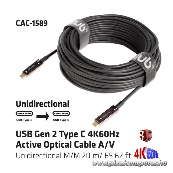 Válaszd a Club 3D CAC-1589 aktív optikai USB-C kábelt, és tapasztald meg a 20 méteres, 4K minőségű adatátvitel erejét a Pixelcomputer kínálatából!