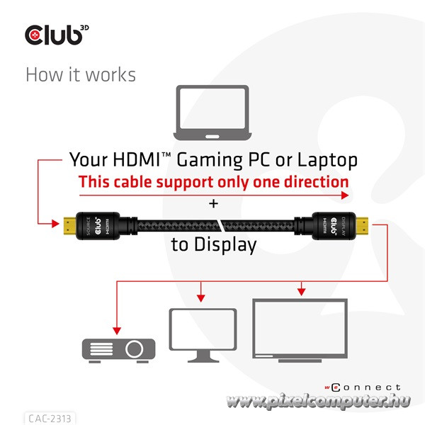 Ez az eszköz ideális választás azoknak, akiknek nagy távolságra kell minőségromlás nélkül HDMI jelet továbbítani. Filmkészítőknek, grafikusoknak, játékosoknak, installációs szakembereknek, de otthoni felhasználóknak is, akik nem szeretnének plusz jelerősítőkkel bajlódni. A Pixelcomputernél elérhető Club 3D CAC-2313 egy olyan prémium kábel, amelyben a technológiai kifinomultság és a megbízhatóság találkozik.