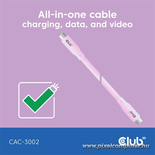 Válaszd a Club 3D CAC-3002 USB4 Type-C kábelt a Pixelcomputer webáruházban, és élvezd a gyors töltés, a 4K képátvitel és a 20 Gbps adatsebesség előnyeit – mindezt egy elegáns, rózsaszín kivitelben! Ez a kábel a teljesítmény és a dizájn tökéletes harmóniáját kínálja azoknak, akik a legjobbat keresik.