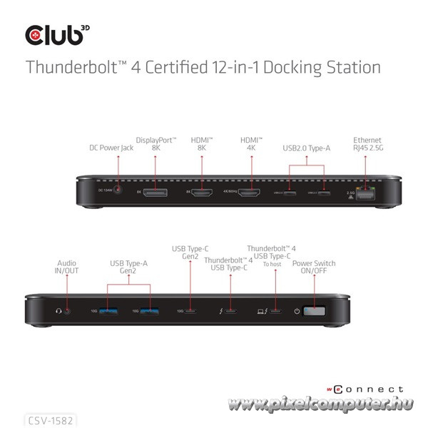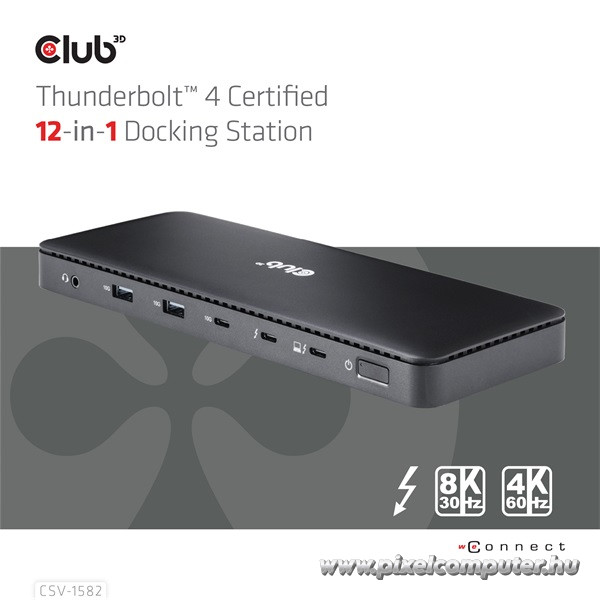 • CSV-1582 Thunderbolt™ 4 tanúsítvánnyal rendelkező 12 az 1-ben dokkolóállomás