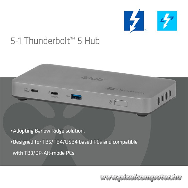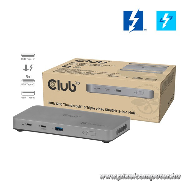 Szerezd be most a Club 3D CSV-2563 Thunderbolt™ 5 hubot a Pixelcomputertől, és alakítsd át a munkád és szórakozásod világát egyetlen kompakt, prémium dokkolóval!
