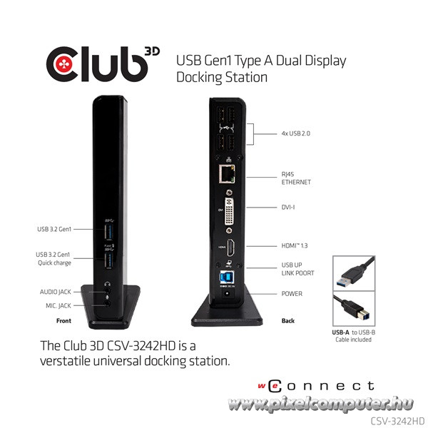 A Club 3D CSV-3242HD tehát nem csupán egy egyszerű bővítő eszköz, hanem egy valódi hatékonyságnövelő társ a mindennapi munkában. A Pixelcomputer vásárlói külön kiemelik a dokkoló megbízhatóságát, halk működését és elegáns, modern formavilágát. Tökéletesen illeszkedik bármilyen irodai környezetbe, és azonnali használatra kész.