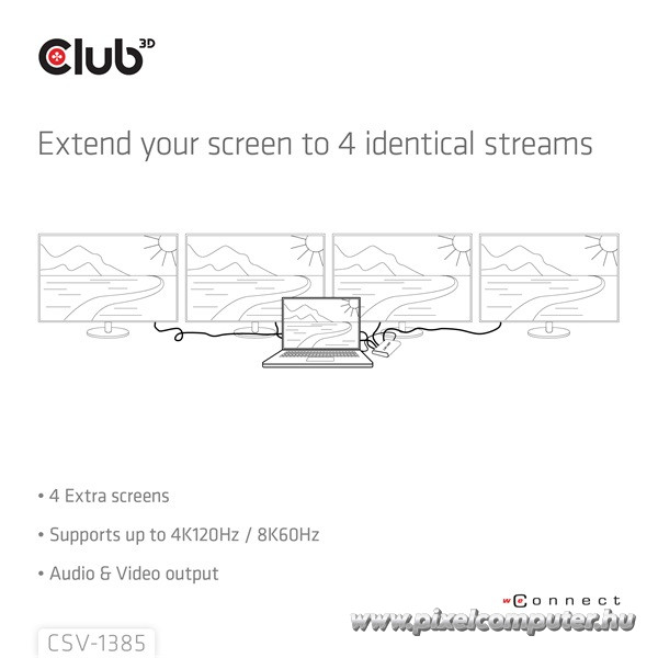 Válaszd a Club 3D CSV-1385 HDMI 2.1 Splittert, és tapasztald meg, milyen, amikor a technológia, a sebesség és a képminőség tökéletes összhangban működik! Szerezd be a Pixelcomputer webáruházból, és élvezd a 4K120Hz élményt akár négy kijelzőn egyszerre – kompromisszumok nélkül!