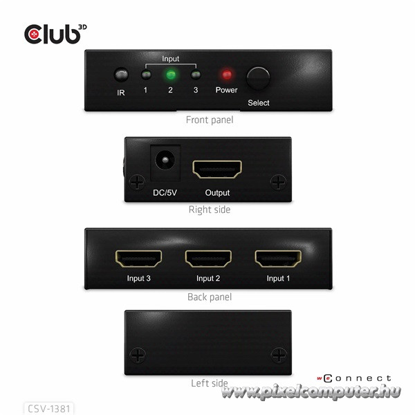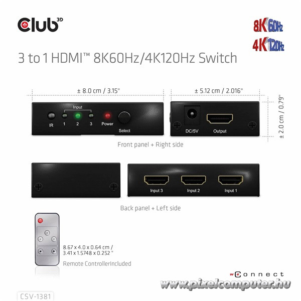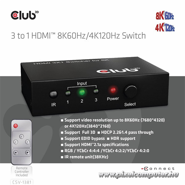 A Club 3D CSV-1381 azok számára ideális választás, akik több nagyfelbontású eszközt szeretnének egyetlen kijelzőhöz csatlakoztatni. Legyen szó gamer konzolról, nagy teljesítményű PC-ről vagy munkaállomásról, ez a HDMI™ switch garantálja a tökéletes kép- és hangminőséget. A 8K60Hz és 4K120Hz támogatás lehetővé teszi a jövőbiztos használatot, így hosszú távon is kiszolgálja a legmodernebb igényeket.