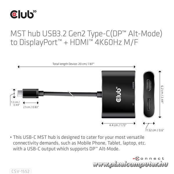 A vásárlói visszajelzések alapján ez a modell kivételesen népszerű az üzleti felhasználók körében, akik gyakran váltanak helyszínt, vagy több monitort használnak a napi munkavégzéshez. A Pixelcomputer kínálatából ez az USB-C MST hub egyértelműen kiemelkedik – a kettős kijelzőtámogatás, a megbízható kapcsolat és a kiváló képminőség miatt. Ha egy kis méretű, de nagy tudású eszközt keresel, ne is keress tovább!