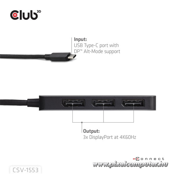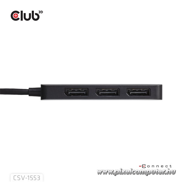 A Club 3D CSV-1553 az igazi többképernyős munkavégzés mestere, amely egyetlen USB-C DP Alt-Mode portból akár három DisplayPort kijelzőt is meghajt, lenyűgöző 4K60Hz-es felbontással. Ha fontos számodra a produktivitás, a kreatív szabadság vagy a magával ragadó vizuális élmény, ez az MST hub mindent biztosít, amire szükséged van. Akár 8K30Hz-es egykijelzős megjelenítést, akár kettős konfigurációban 8K30Hz + 4K144Hz felbontást, akár három képernyőn 4K60Hz-et szeretnél, a Pixelcomputer vásárlói garantálják: a CSV-1553 teljesítményben és megbízhatóságban is a csúcsot képviseli.