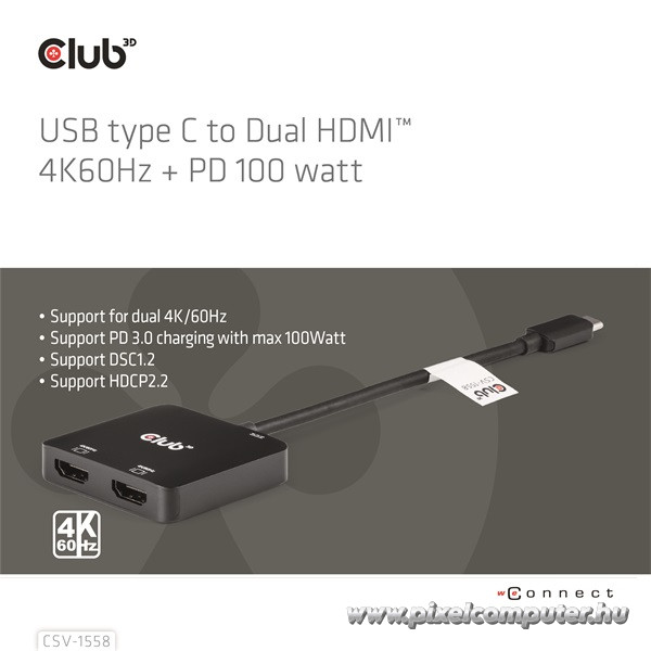 Akár otthon, akár úton vagy, a Club 3D CSV-1558 a mobil produktivitás alapja. Könnyedén csatlakoztatható projektorhoz, kijelzőhöz, televízióhoz – és minden olyan eszközhöz, amely DP Alt módot támogat. Ez az adapter nem hagy cserben akkor sem, amikor a legtöbbre van szükséged: stabil kapcsolatot, éles képet, zökkenőmentes áramellátást kapsz – minden pillanatban.