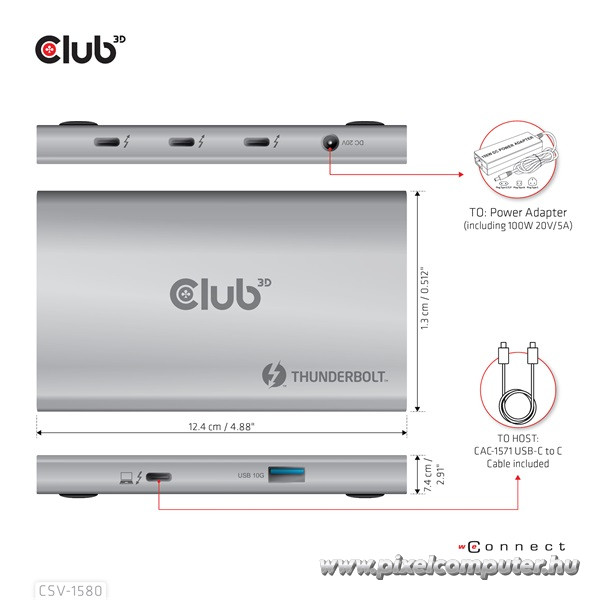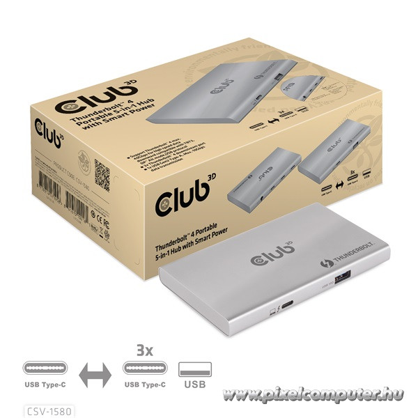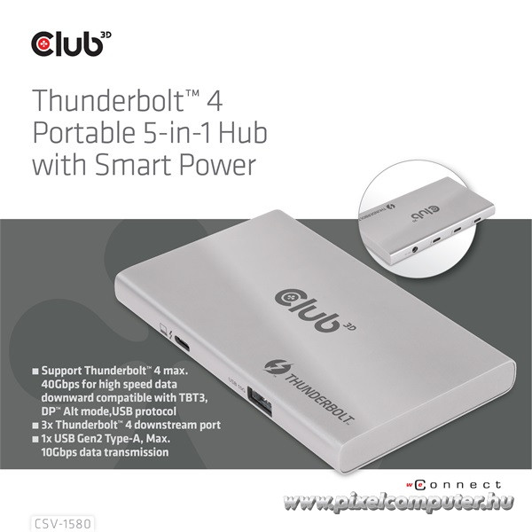 Ne érd be kevesebbel – válaszd a Club 3D CSV-1580 Thunderbolt™ 4 Hubot a Pixelcomputer kínálatából, ha kompromisszummentes, professzionális csatlakozási megoldást keresel prémium gépedhez!