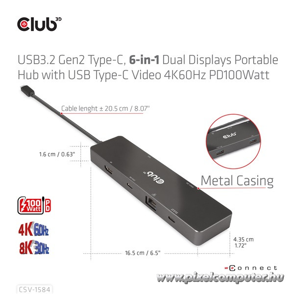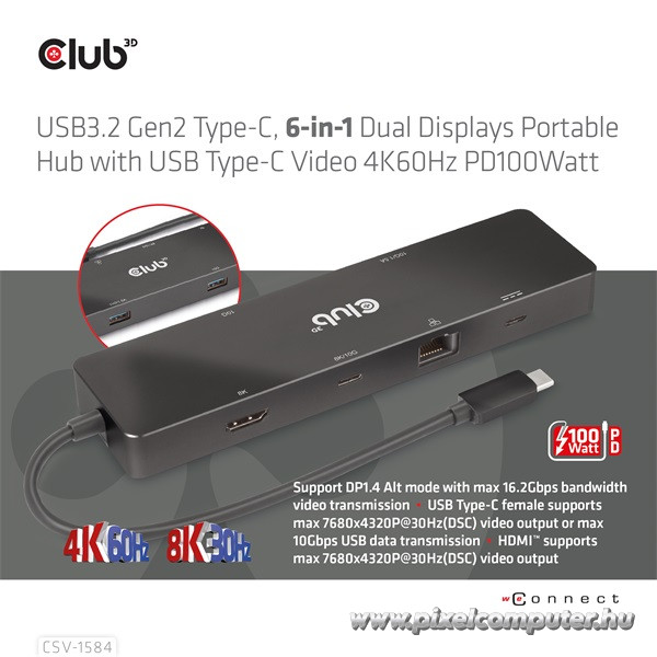 Fedezd fel a Club 3D CSV-1584 lehetőségeit, és élvezd a kettős kijelző, gyors adatátvitel és 100W-os töltési kapacitás előnyeit minden nap – vásárold meg most a Pixelcomputer kínálatából, és lépj egy szinttel feljebb a munkavégzés és multimédia világában!