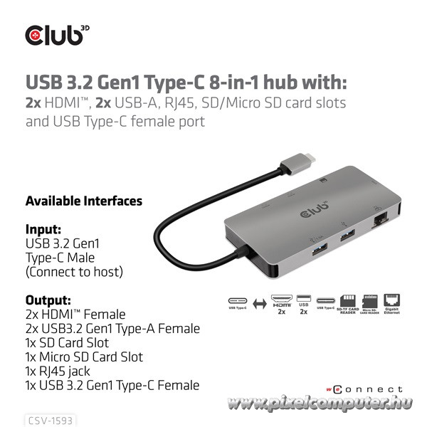 A CSV-1593 különösen azoknak készült, akik gyakran dolgoznak útközben vagy kompakt eszközökkel, amelyek korlátozott számú porttal rendelkeznek. Ideális választás MacBook-okhoz, ultrabookokhoz, tablet típusú PC-khez vagy bármilyen USB-C / Thunderbolt™3 csatlakozóval rendelkező készülékhez. A dupla HDMI kimenet lehetővé teszi több kijelző egyidejű használatát, így prezentációk, multitasking vagy akár otthoni streaming élmény is tökéletesen megvalósítható. Az SD/Micro SD kártyaolvasók különösen hasznosak fotósoknak, tartalomkészítőknek és mérnököknek is – a párhuzamos olvasás és írás óriási előny. Ráadásul az USB-A portok lehetővé teszik nyomtatók, egerek, külső adattárolók, vagy egyéb perifériák gyors csatlakoztatását.
