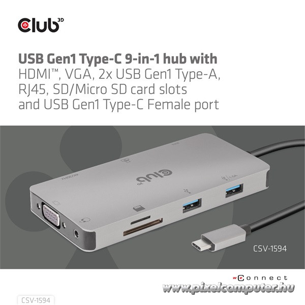 A Pixelcomputernél beszerezheted ezt az eszközt, amely nemcsak praktikus, hanem elegáns megjelenésével is illeszkedik bármilyen környezethez. Kompakt mérete, könnyű súlya és masszív kialakítása révén minden nap veled lehet – mindig, amikor csak szükséged van rá. Ha olyan USB hubot keresel, ami egyszerű, mégis nagy teljesítményű, a Club 3D CSV-1594 a tökéletes megoldás!