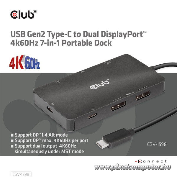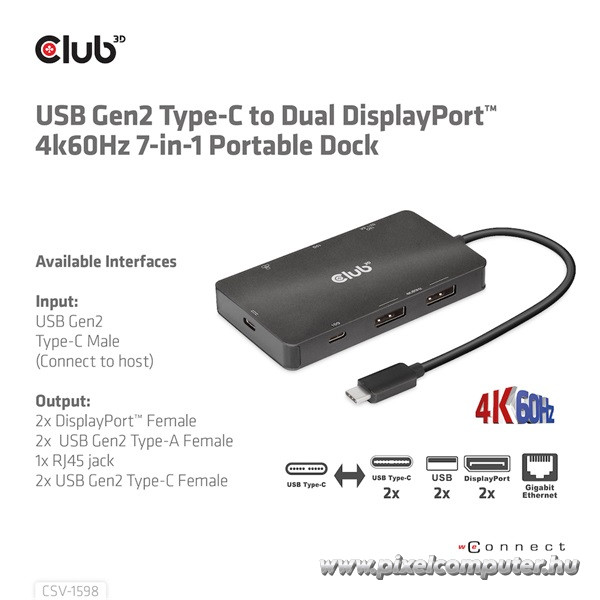 Válaszd a Club 3D CSV-1598 USB-C Gen2 dokkolót, ha kompromisszummentes csatlakozási és kijelzőtámogatásra vágysz – rendeld meg most a Pixelcomputer webáruházából!