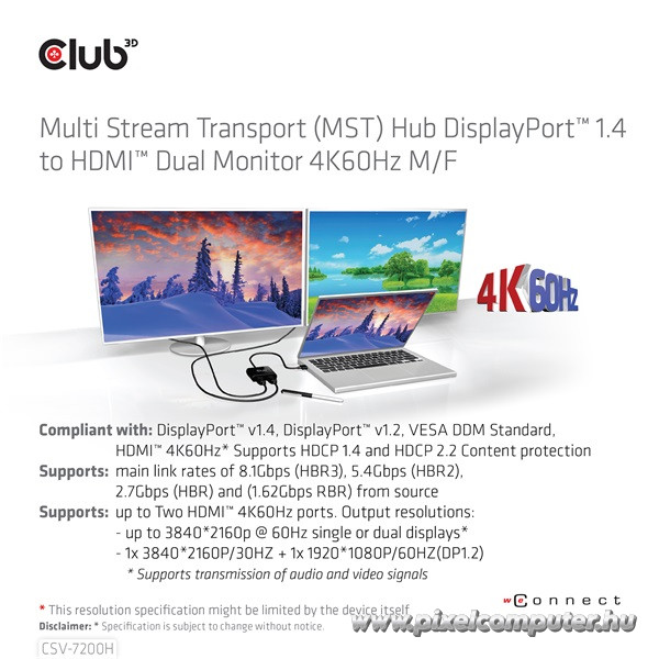 A támogatott 4K60Hz felbontás és a szinkron audió- és videóátvitel biztosítja, hogy ne csak több kijelződ legyen, hanem mindegyik tökéletes képminőséget és zökkenőmentes teljesítményt nyújtson. A HDCP 2.2 és HDCP 1.4 támogatás révén a védett tartalmak is gond nélkül megjelennek, legyen szó streaming szolgáltatásról vagy digitális tartalomról. A Club 3D MST HUB egyértelműen az a megoldás, amely új szintre emeli a monitorozási lehetőségeket, kompromisszumok nélkül.