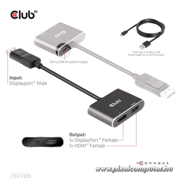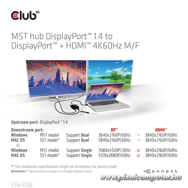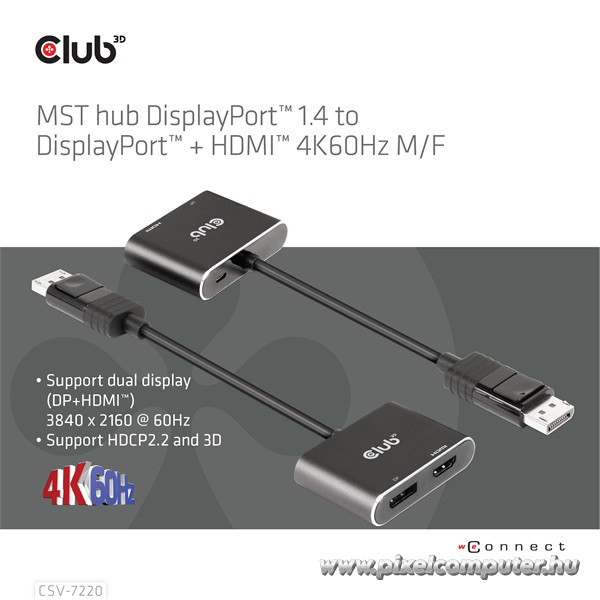 A Club 3D CSV-7220 tökéletes megoldás, ha bővíteni szeretnéd géped kijelzőkapacitását, de nincs helyed vagy lehetőséged nagyobb dokkolóra. Használd ki a DisplayPort 1.4 előnyeit, és alakítsd át egyetlen csatlakozóval gépedet valódi többmonitoros munkaállomássá – természetesen a Pixelcomputer prémium választékából!