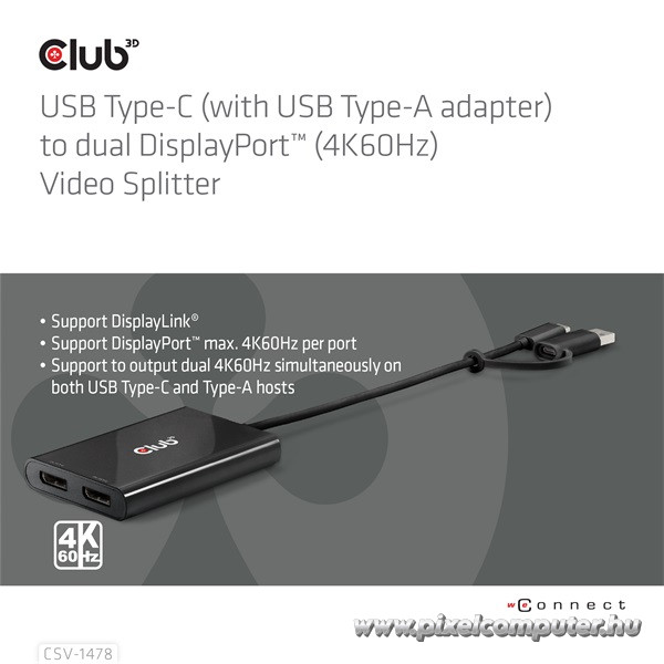 A DisplayLink® támogatásnak köszönhetően a CSV-1478 nem igényel külön grafikus kimeneteket a gépen: a videójelet az USB kapcsolaton keresztül továbbítja, lehetővé téve a többmonitoros konfigurációt akár olyan eszközöknél is, amelyek natívan nem támogatnák. A DP Alt mód pedig biztosítja, hogy a modern USB-C portok teljes grafikai kapacitását ki tudd használni.