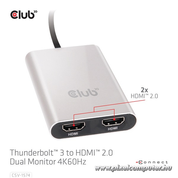 Club 3D Video Splitter - CSV-1574 (Thunderbolt 3 to Dual HDMI 2.0, 4K60Hz)