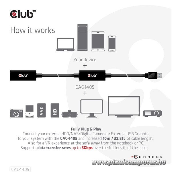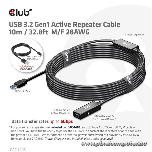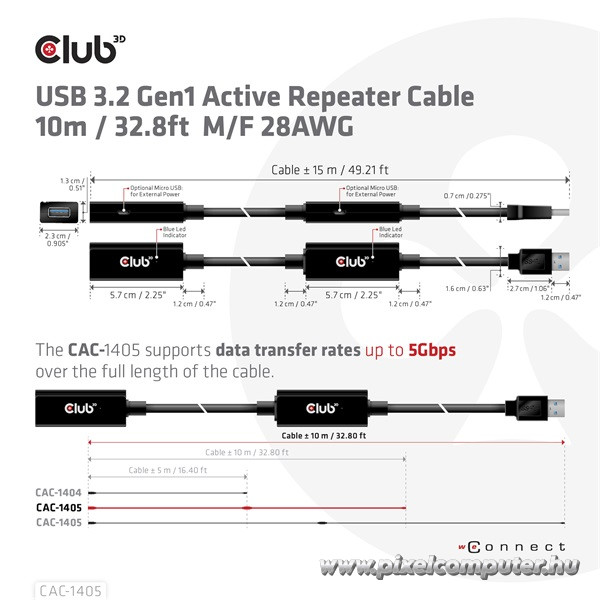 A Club 3D CAC-1405 azoknak készült, akik hisznek abban, hogy a technológia a szabadságot kell szolgálja. Legyen szó gamerekről, VR-rajongókról, fotósokról vagy IT-szakemberekről, ez a kábel megszünteti a távolság korlátait és az adatátviteli kompromisszumokat. A teljes 10 méteres hossz sem rontja a sebességet, így a munkád vagy a játékod teljes értékű marad. A prémium anyaghasználat, az aktív jelismétlő és a gondosan tervezett csatlakozók egyértelműen jelzik: ez nem egy egyszerű hosszabbító, hanem egy eszköz a gördülékenyebb és hatékonyabb mindennapokhoz.