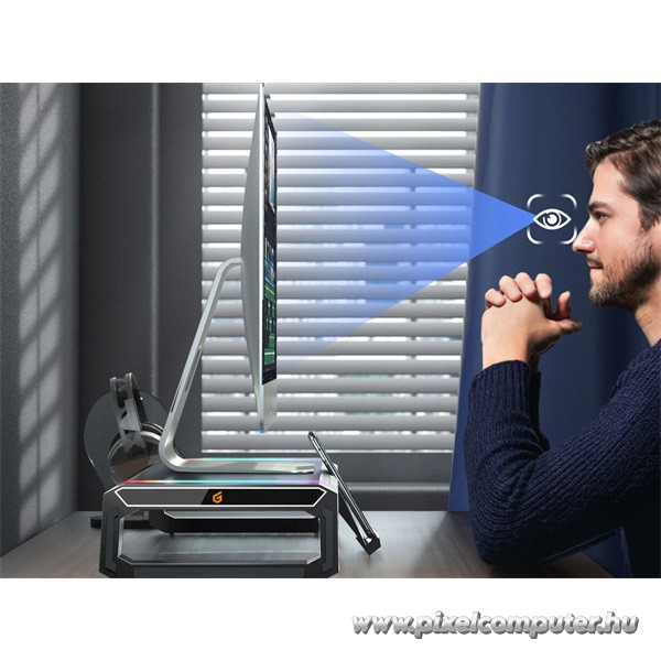 Az állítható RGB világítás modern és dinamikus hangulatot teremt. A különböző fényhatások egyedi megjelenést biztosítanak. A fekete kivitel letisztult és könnyen illeszkedik bármilyen asztali környezetbe. Az összecsukható kialakítás egyszerű tárolást tesz lehetővé. A 1,45 kg-os tömeg stabilitást biztosít használat közben. A kialakítás ötvözi a funkcionalitást és a látványt.