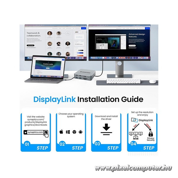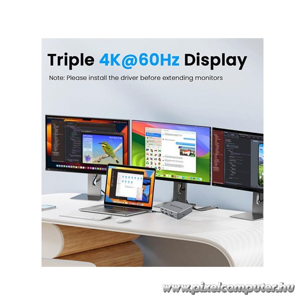 Ez a dokkoló ideális választás professzionális felhasználóknak, akik egyszerre több kijelzőt, nagy sebességű adattárolót, hálózati kapcsolatot és perifériát szeretnének egyetlen eszközön keresztül kezelni. Legyen szó irodai munkáról, otthoni szerveres háttérről, fejlesztésről vagy akár mobil munkavégzésről, a DONN25G minden igényt kielégít. A széles operációs rendszer támogatás – beleértve a Mac, Windows, Android és Ubuntu platformokat – biztosítja a rugalmas alkalmazhatóságot, míg a három kijelző egyidejű kezelése (MST támogatással) lehetővé teszi, hogy egyidejűleg több projektet is átláthatóan kezelhess, maximalizálva a hatékonyságot.