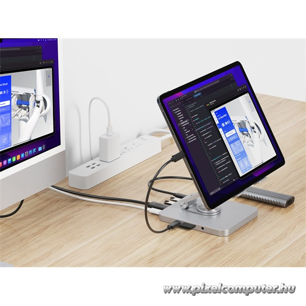 A Pixelcomputer vásárlói gyakran választják ezt a modellt tablet alapú munkaállomások kialakításához. A visszajelzések az ergonomikus kialakítást és a stabil HDMI kapcsolatot emelik ki. A 4K@60Hz támogatás részletgazdag megjelenítést biztosít. A 100W PD töltés kényelmes energiaellátást kínál. A többportos kialakítás csökkenti a külön adapterek szükségességét. A 360°-os forgatás rugalmas munkapozíciót tesz lehetővé. Ez a modell komplett, professzionális dokkolómegoldás modern USB-C eszközökhöz.