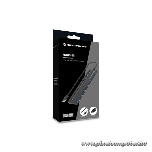 Válaszd a Conceptronic HUBBIES19BP 7 Port USB 3.2 Gen1 Hub modellt a Pixelcomputer kínálatából, és bővítsd rendszered csatlakozási lehetőségeit egyszerűen és megbízhatóan.