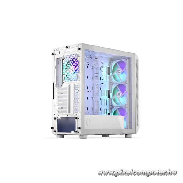 Az edzett üveg oldallap modern és prémium megjelenést kölcsönöz, miközben lehetővé teszi, hogy a belső komponenseket és az ARGB világítást is teljes pompájukban lásd. Ez különösen vonzó azok számára, akik szeretnék, hogy számítógépük ne csak teljesítményben, hanem látványban is kitűnjön. A fehér szín letisztult, elegáns stílust sugall, amely könnyen illeszkedik különféle környezetekbe, legyen az gamer szoba vagy irodai tér.